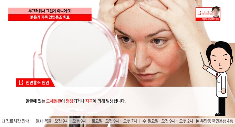 안녕하세요! 수원에 위치한 아임스타입니다. 오늘은 안면홍조에 대한 레이저 리뷰 사진을 보고 피부과 레이저 가격을 안내해 드리겠습니다. 아침저녁으로 일교차가 큰 요즘 사우나를 가거나 뜨거운 음식을 먹었을 때 더운 실내에 들어가거나 갱년기 증상이 있는 경우 얼굴이 갑자기 빨개진 경험이 있습니까?안면홍조, 모세혈관확장증입니다.원인은 다양해서 모르는 경우도 많습니다.