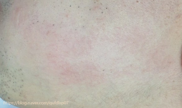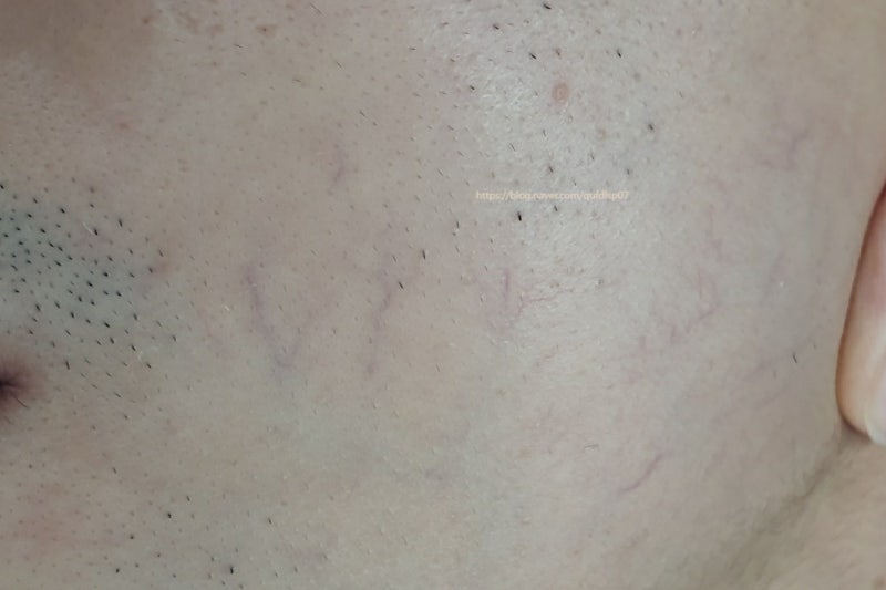혈관을 없앤 레이저 후의 모습입니다.레이저 직후 자극을 받아 조금 붉어진 모습입니다.이거는 5~10분이면 가라앉습니다.
