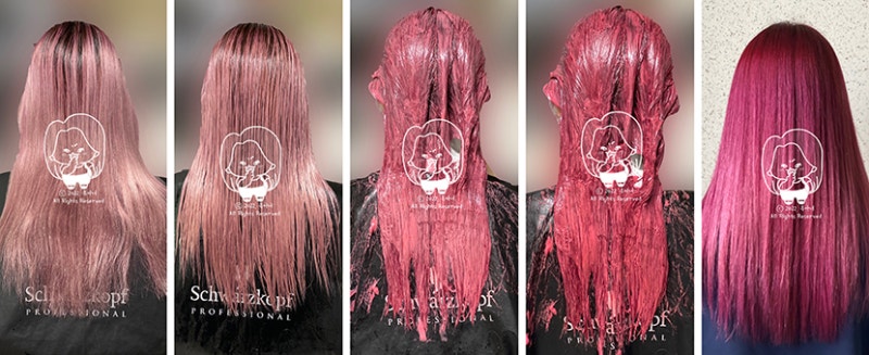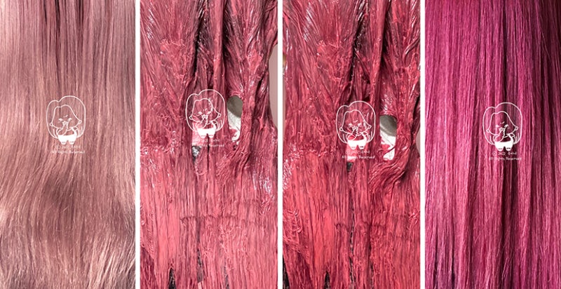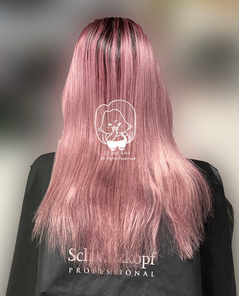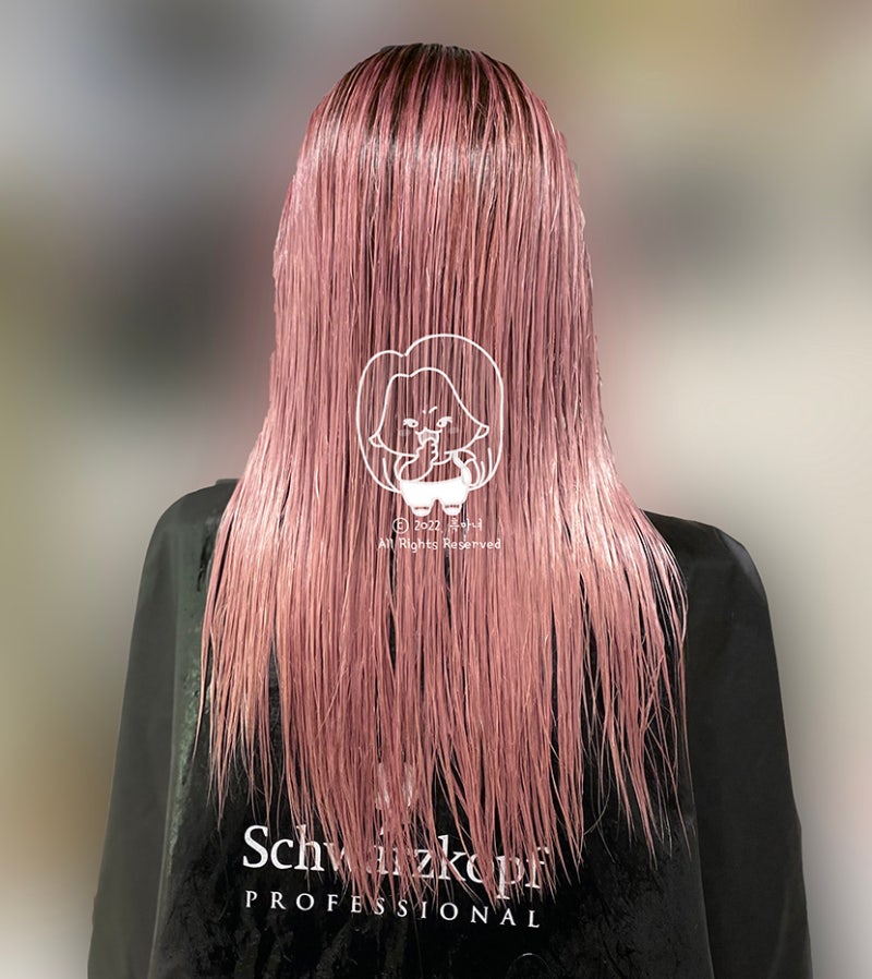 메인으로 사용한 염색약, 셀프염색 레시피!!슈바츠코프 피라밍고 라인의 레드와 바이올렛 핑크를 사용하였으며 사진에는 없지만 피라졸 필수!!거기에 좀더 예쁘게 표현하기 위해서 T-clear를 더했어..